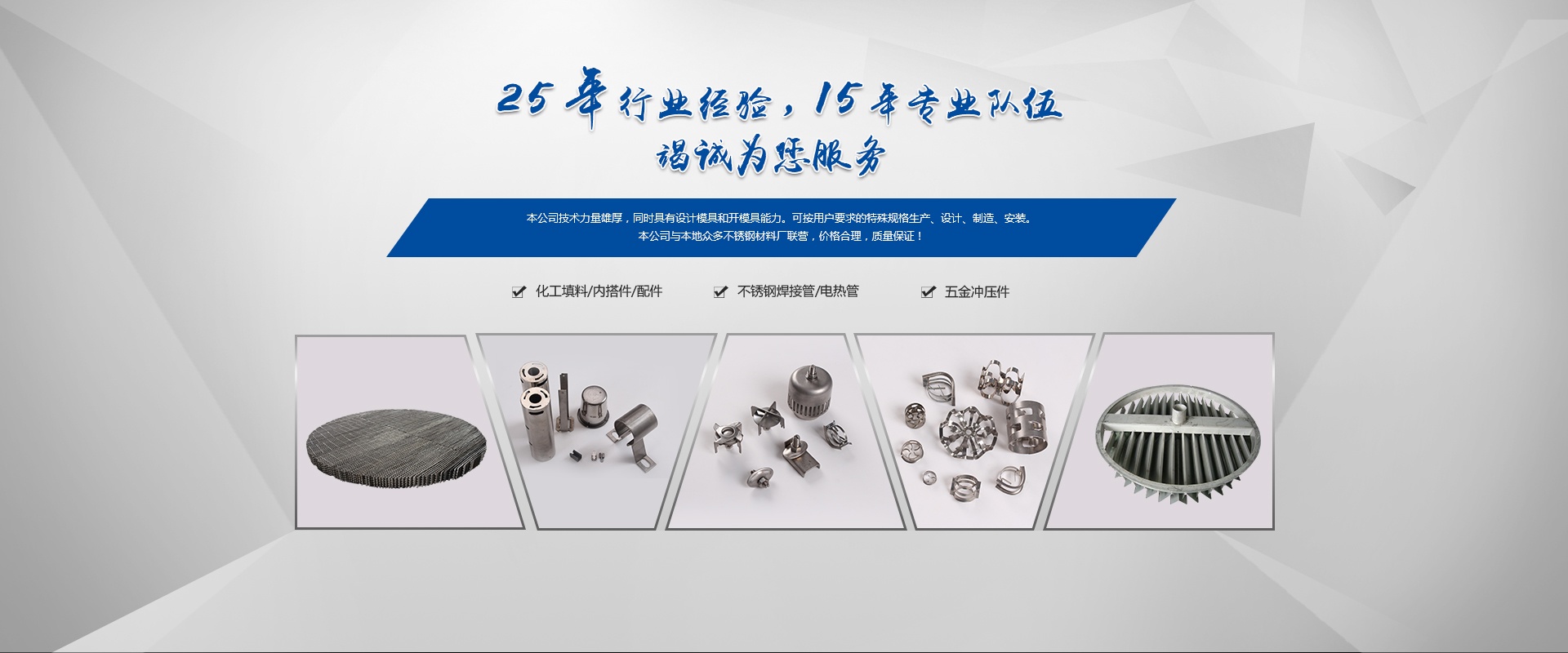 嘉興市久達不銹鋼有限公司原海鹽中晟不銹鋼有限公司,本公司是全國化工行業(yè)和中國石化總公司推薦新型填料、塔內(nèi)件及配件產(chǎn)品的專業(yè)生產(chǎn)廠。2009年建成標準化廠房,生產(chǎn)能力得到進一步的提升,效率也更加高效。散堆填料采用高速沖床一次成型技術(shù)生產(chǎn)。
